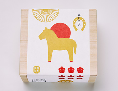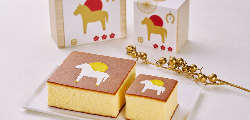 2026年の干支の絵柄「午」を刷り込んだ迎春限定のカステラ。