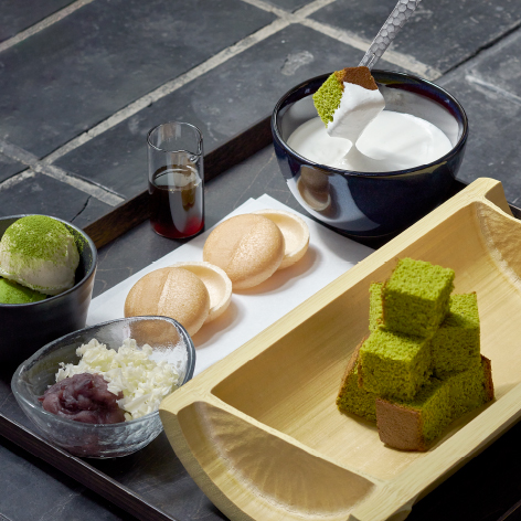 抹茶カステラをクリームにディップしたり